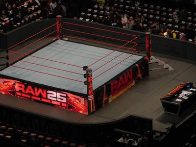 Smackdown ramp floor. The pyro goes off and she takes a seat in a steel chair on the ramp. Jey gets hyped up as smackdown goes to commercial. Sami throws a fit on the ramp as hardy counters aj in the ring and drops him with a twist of fate. The match also included alexa bliss lacey evans and tamina but bliss walked out of the match like she was in a trance after giving cross a sister abigail on the floor.