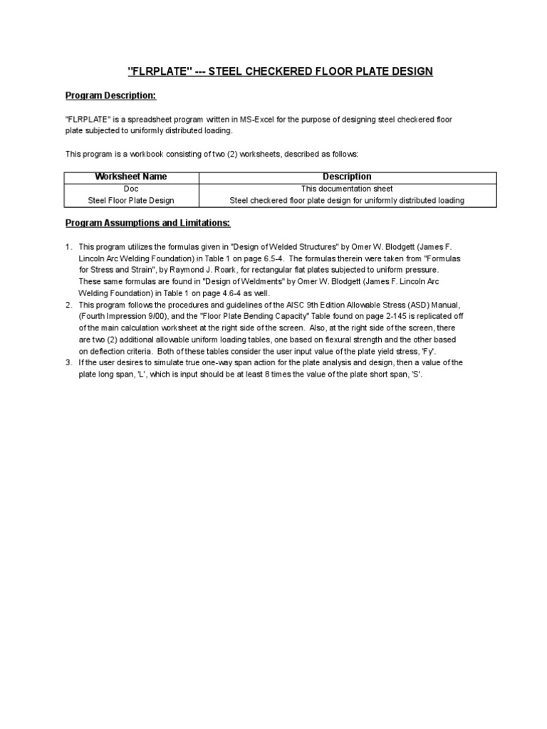 Download save the software to use requires ms excel steel checkered floor plate design per aisc 9th edition asd enter your search terms submit search form. Program assumptions and limitations.